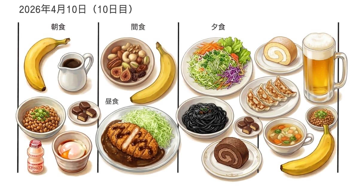 2026年4月10日(10日目)の食事記録|AIに栄養分析してもらったら、総合評価63点でした。