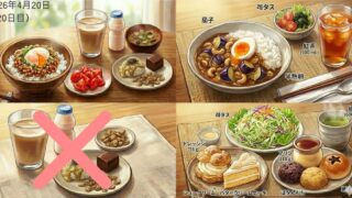 2026年4月20日の食事記録を生成AIに栄養分析させたら、総合評価は62点でした。減点要因は...是非ご覧ください!